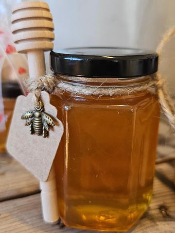 Our delicious honey infused with hot peppers for an extra kick to your toast. Or use as a baste for your chicken while grilling. Makes a nice accent to your charcuterie board.